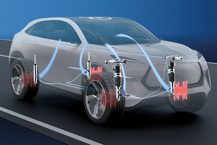 Мехатронные актуаторы ZF установят новые стандарты в акустике шасси и значительно снизят шум от шин в салоне двигающегося автомобиля, обещают специалисты. Такой шум распространяется через компоненты шасси, такие как рычаги подвески и амортизаторы. Поэтому интеллектуальный датчик шасси ZF со встроенным акселерометром точно замеряет вибрации шасси. Данные анализируются с помощью специально разработанного алгоритма, который распознает характерные шумовые паттерны в полости шины (обычно около 200 герц). Затем программное обеспечение ZF cubiX генерирует ответный сигнал, проходящий через клапаны полуактивных амортизаторов (CDC). Такие «интеллектуальные» демпфирующие устройства – будущее технологий шасси. Устанавливается амортизатор с шумоподавлением без дополнительных затрат на монтаж и без расширения монтажного пространства.